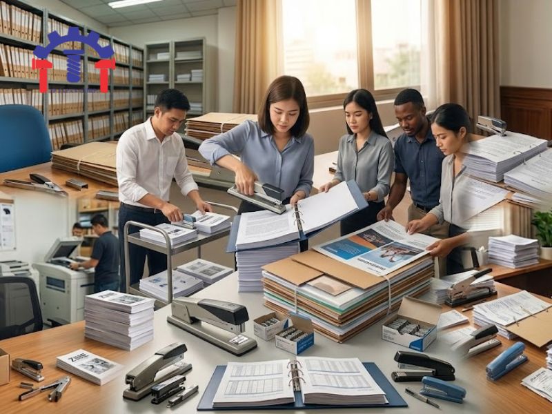 Việc sử dụng kim bấm giúp tài liệu được sắp xếp rõ ràng và dễ dàng quản lý.